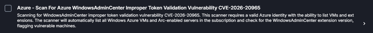 On the same day as the Microsoft disclosure, Cymulate Exposure Validation was updated with attack scenario Azure - Scan For Azure WindowsAdminCenter Improper Token Validation Vulnerability CVE-2026-20965 to test this vulnerability in your environment.