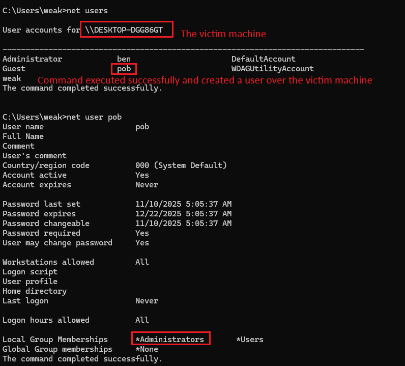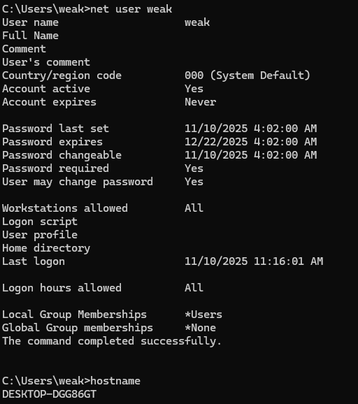 Prior to executing RunCommand, the machine had the following users: