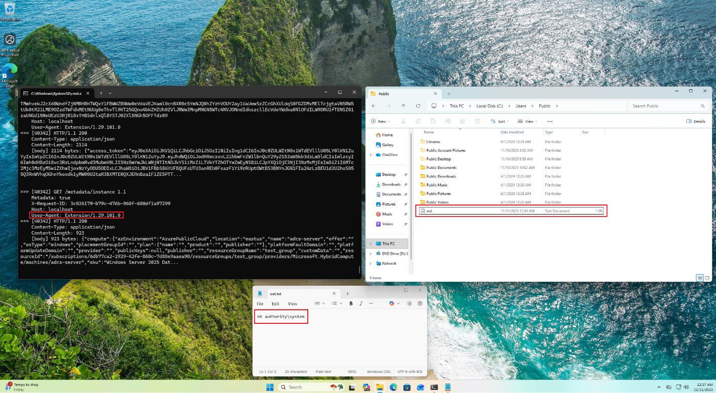 A chain of vulnerabilities in Azure Arc agent services for Windows lets a low-privileged user hijack service communications, impersonate the machine’s cloud identity, escalate to NT AUTHORITY\SYSTEM and even trick it to connect to an attacker-controlled tenant instead.
