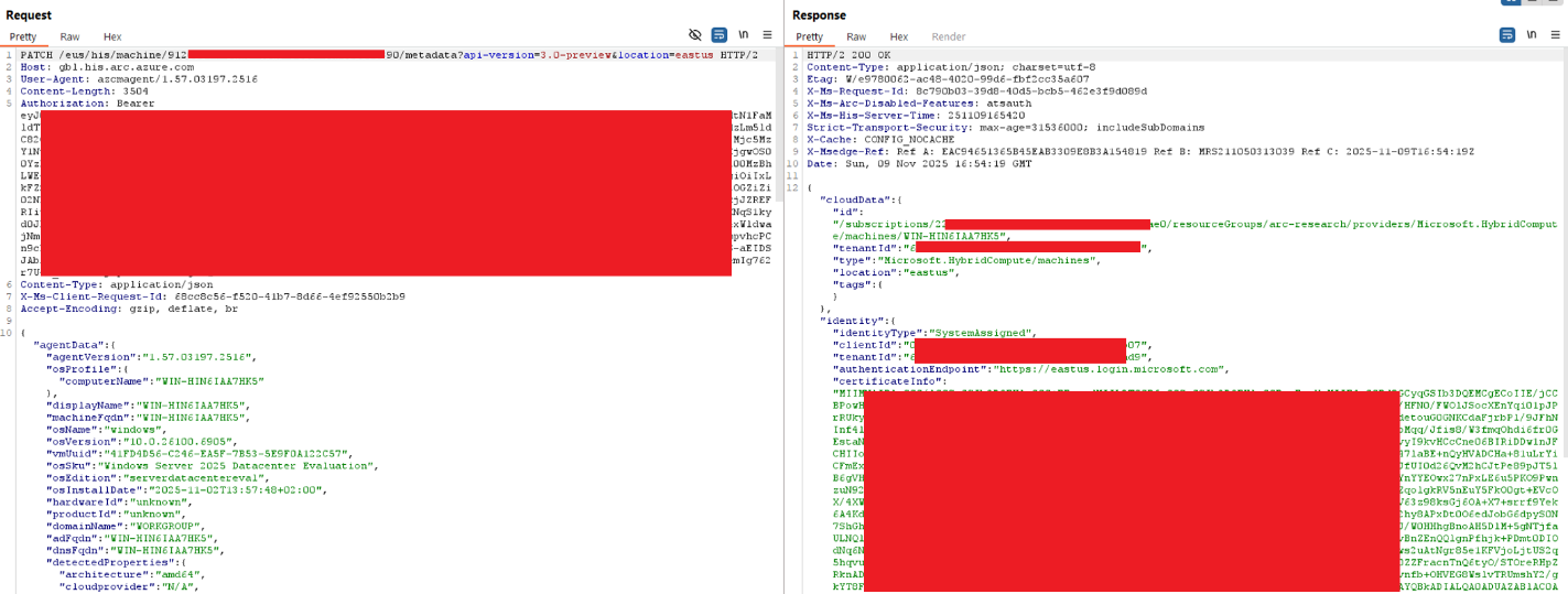 Note that a valid token allows full and persistent control over the machine’s Azure object by using the ARC API to get (or set a new) certificate for the object in Azure: