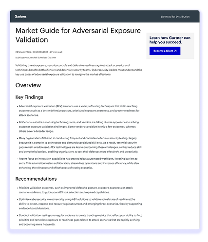 I invite you to read the full Gartner Market Guide for Adversarial Exposure Validation. Download your complimentary copy here.