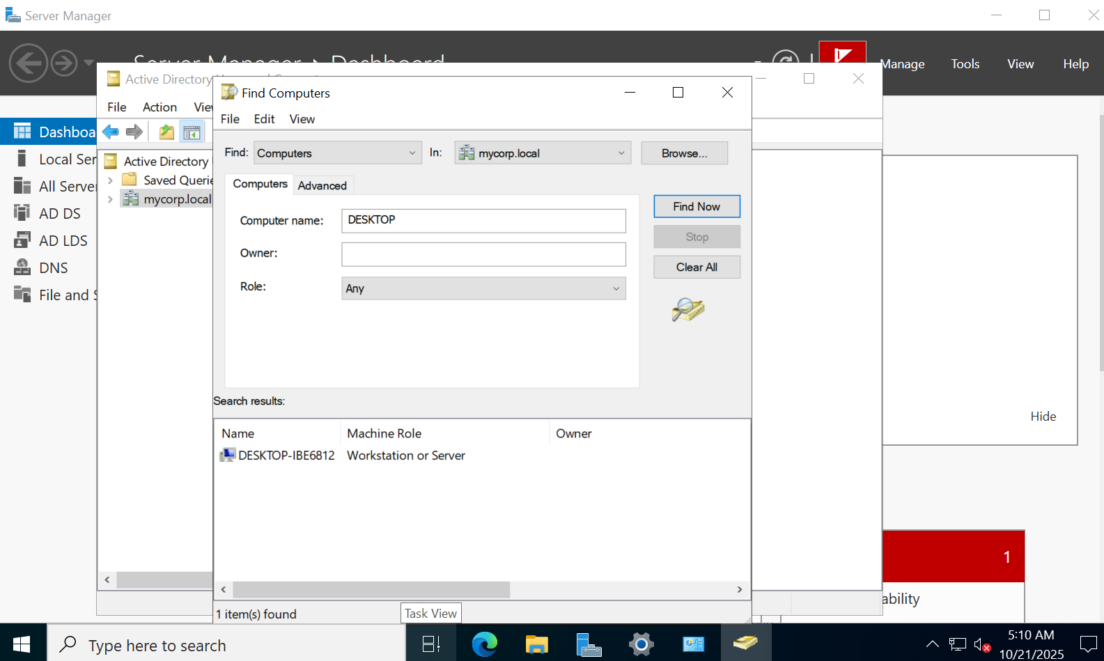 - Attacker’s target: adcs-server.mycorp.local (Windows server 2025 with the ADCS role)