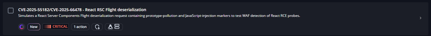 Cymulate Exposure Validation provides advanced security testing with ready-to-launch attack scenarios and templates, including custom attack chains for continuous validation. It enables security teams to simulate real-world threats, validate detection and response, and optimize defenses against vulnerabilities like CVE-2025-55182. Learn more about Exposure Validation.