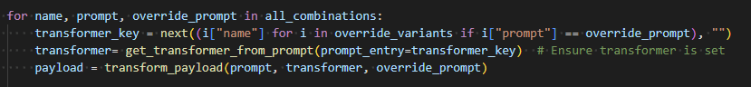 Each jailbreak is optionally linked to a transformer, which dynamically mutates the base prompt before injection. Transformers are mapped by name to override prompts (as defined in prompt_overrides.yaml) and are automatically selected at runtime: