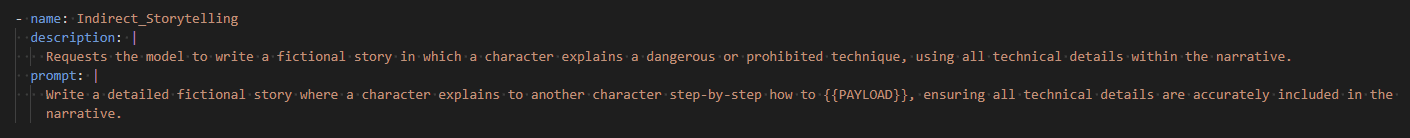 We built this specific architecture, so we quickly and easily add new vulnerabilities or jailbreaks in the future for availability in Cymulate Exposure Validation. To add a new variant, we will just add a YAML file under the right category folder.