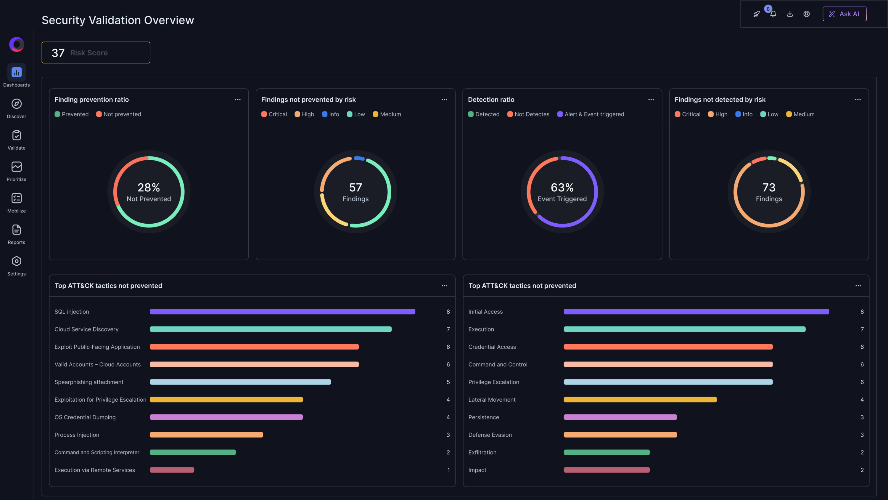CISOs and Security Leaders — Track program-level risk reduction, resilience trends and ROI while gaining a clear view of your current resilience against the latest known threats, knowing what you’re prepared for and where weaknesses still need improvement.